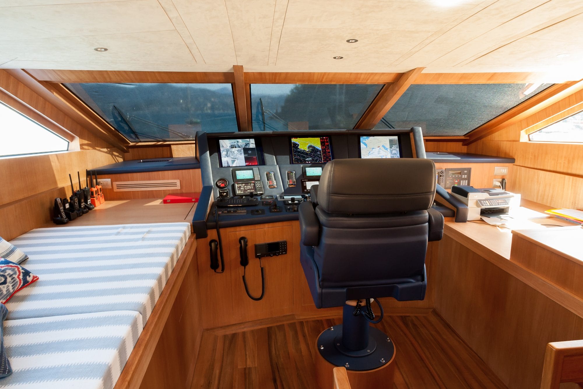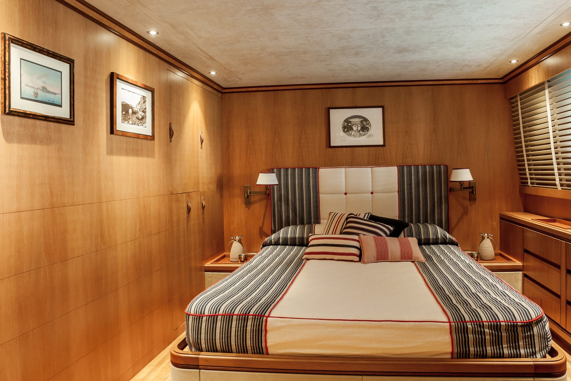 The flagship vessel demonstrates exceptional construction through its triple-planked design, with the addition of fibreglass to enhance its resistance and waterproofing capabilities. Fully loaded, the yacht achieves a displacement of 180 tonnes.